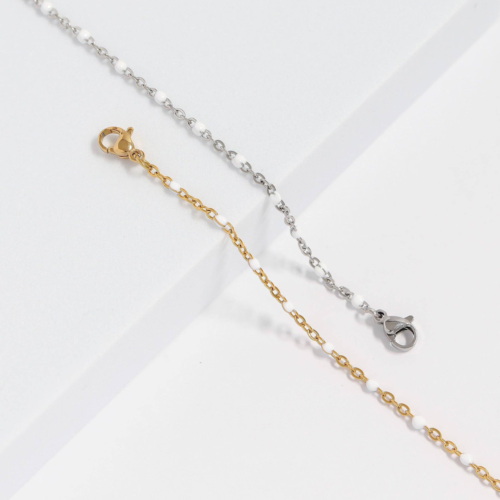Add a touch of brightness to your stack with this gold + white bead chain bracelet.🤍 Crafted from stainless steel with a rich 18K gold PVD finish, with white enamel accents throughout. Tarnish-resistant and made to last, it’s perfect for stacking and wearing 24/7. Like permanent jewelry without the commitment.✨