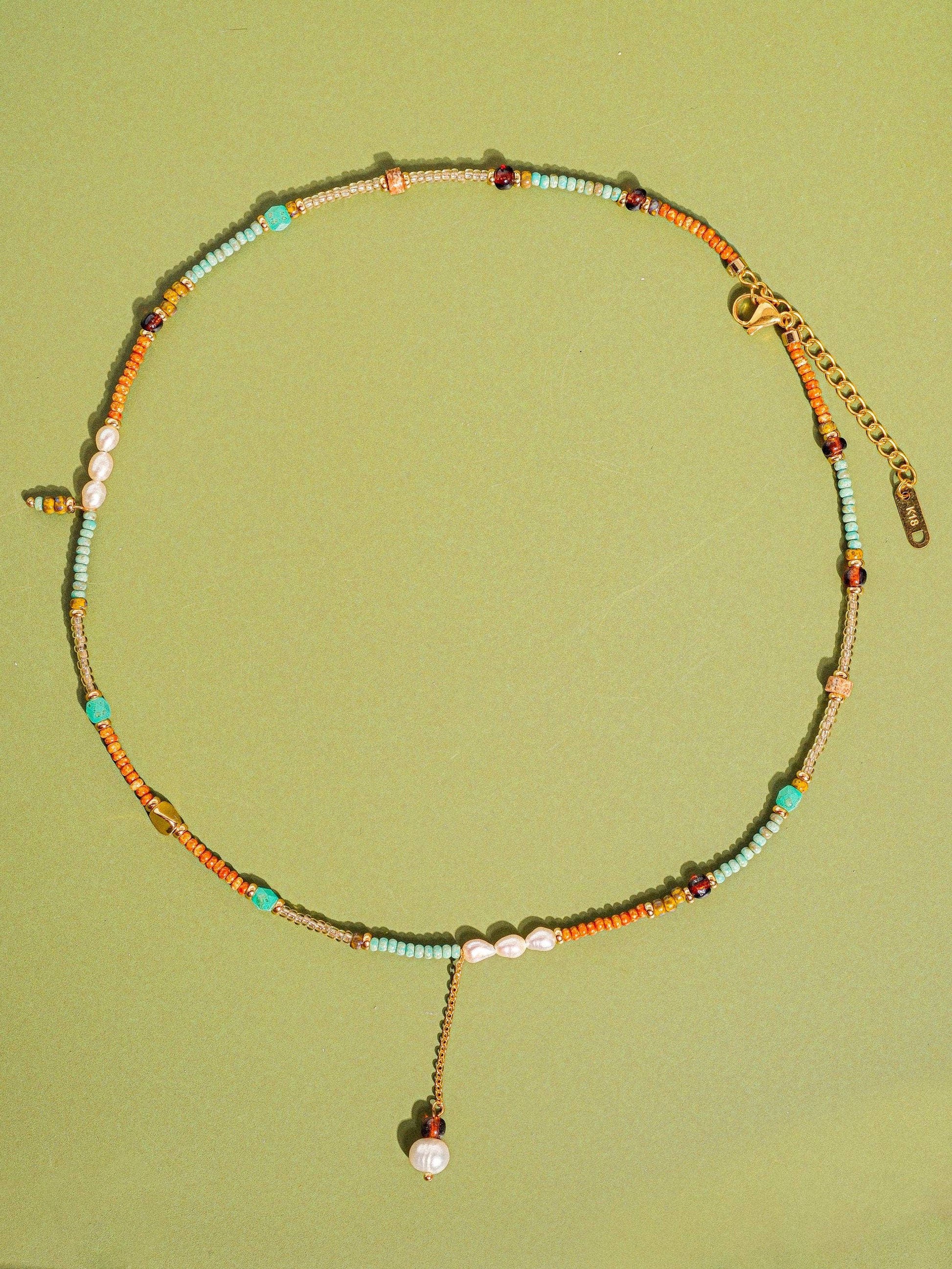 Necklace -3- Sapphira 18K Gold-Plated Bohemian Turquoise Beaded Necklace