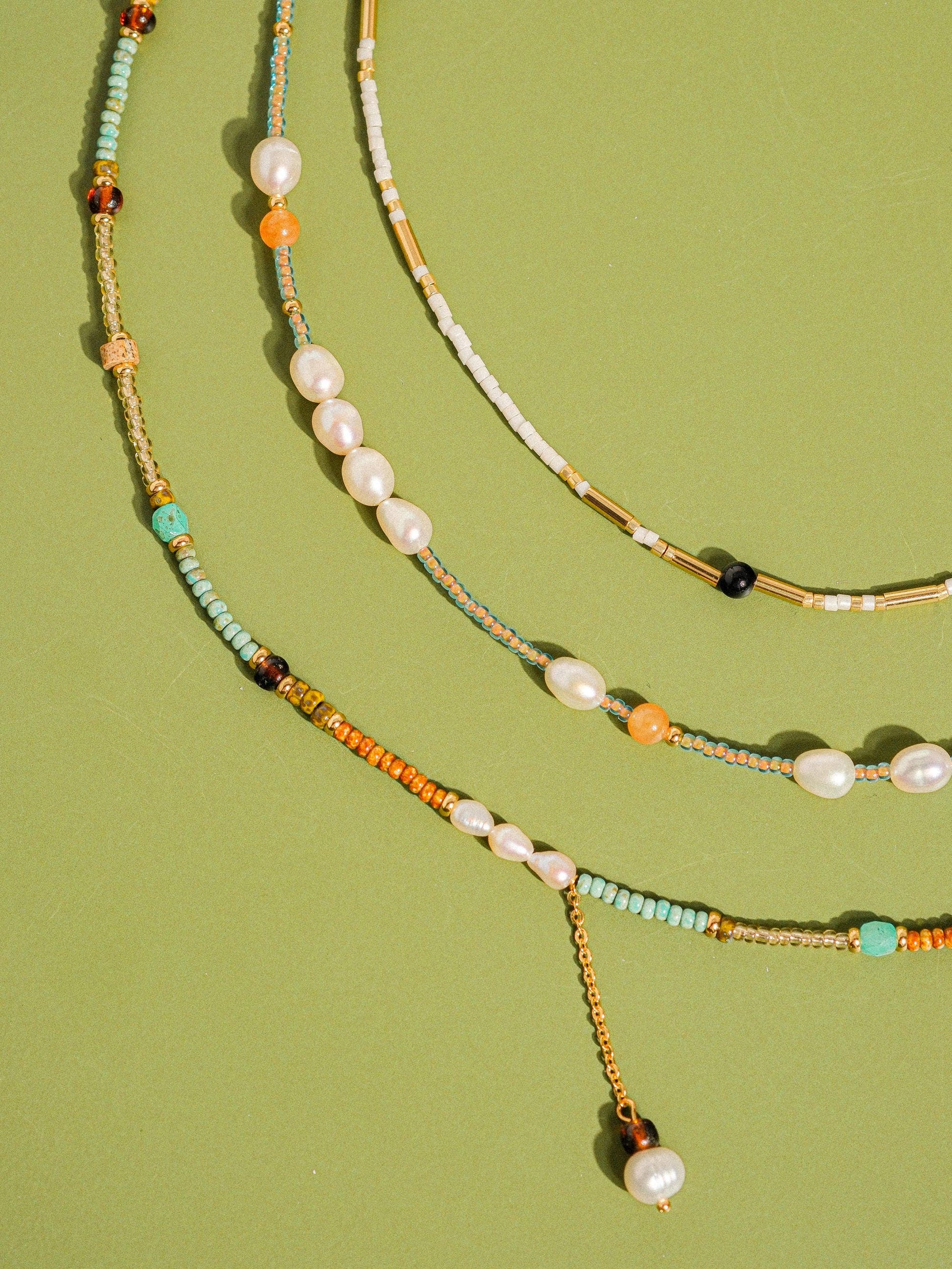 Necklace -1- Nyx 18K Gold-Plated White and Black Beaded Necklace