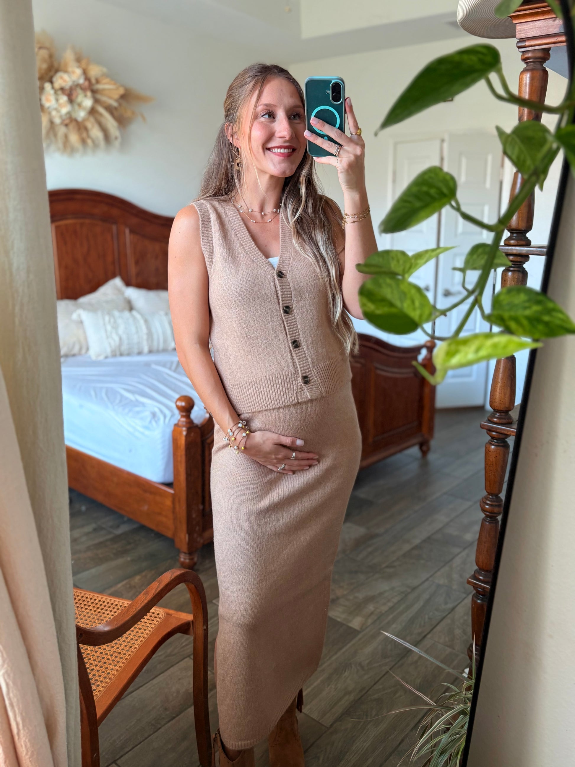Latte Knit Vest & Midi Skirt Set